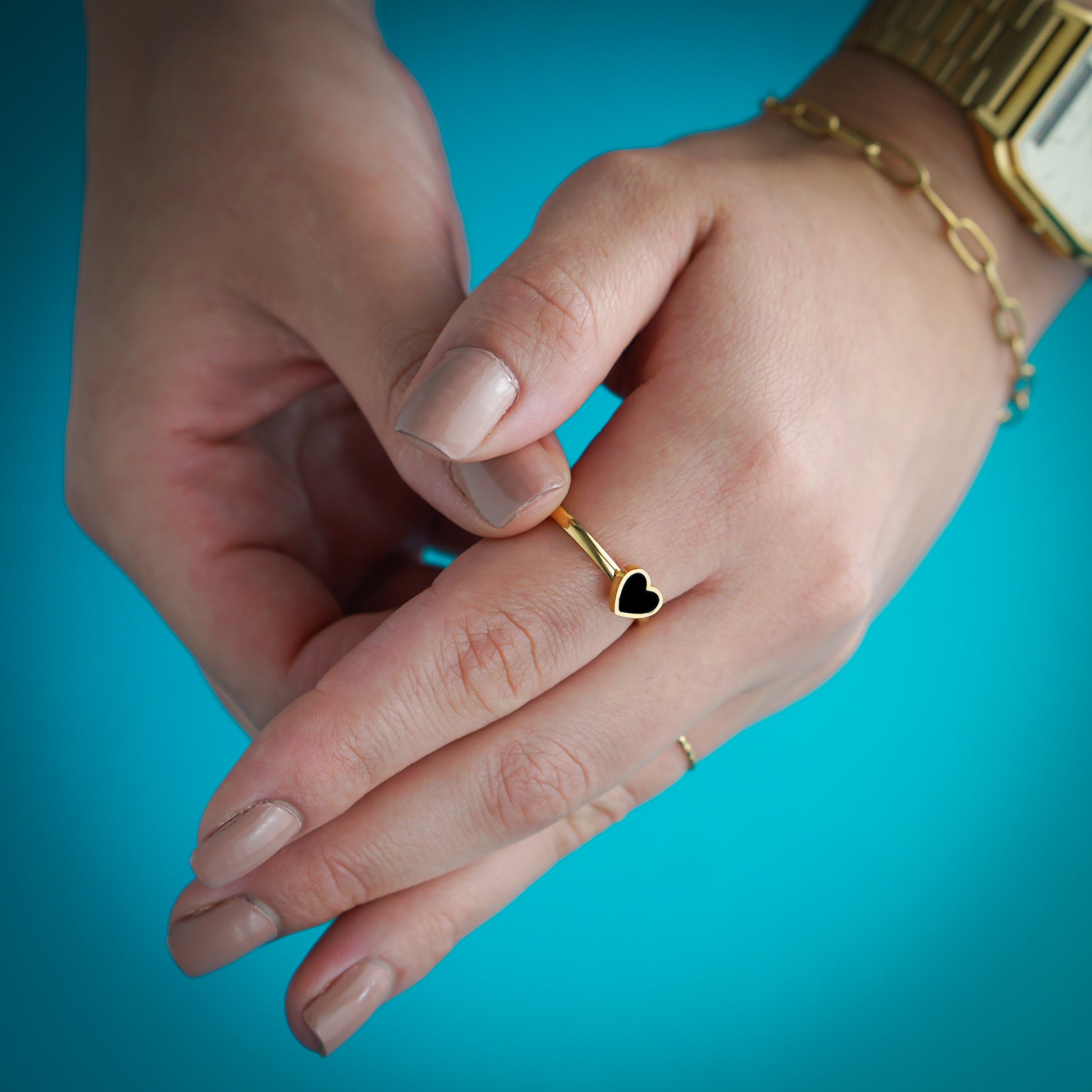 Elevate any outfit with the versatile Black Heart Ring. This fun and elegant ring adds a playful touch to any look. Plus, it's waterproof and tarnish-free, ensuring long-lasting wear. Make a statement and express your style with this must-have accessory.
