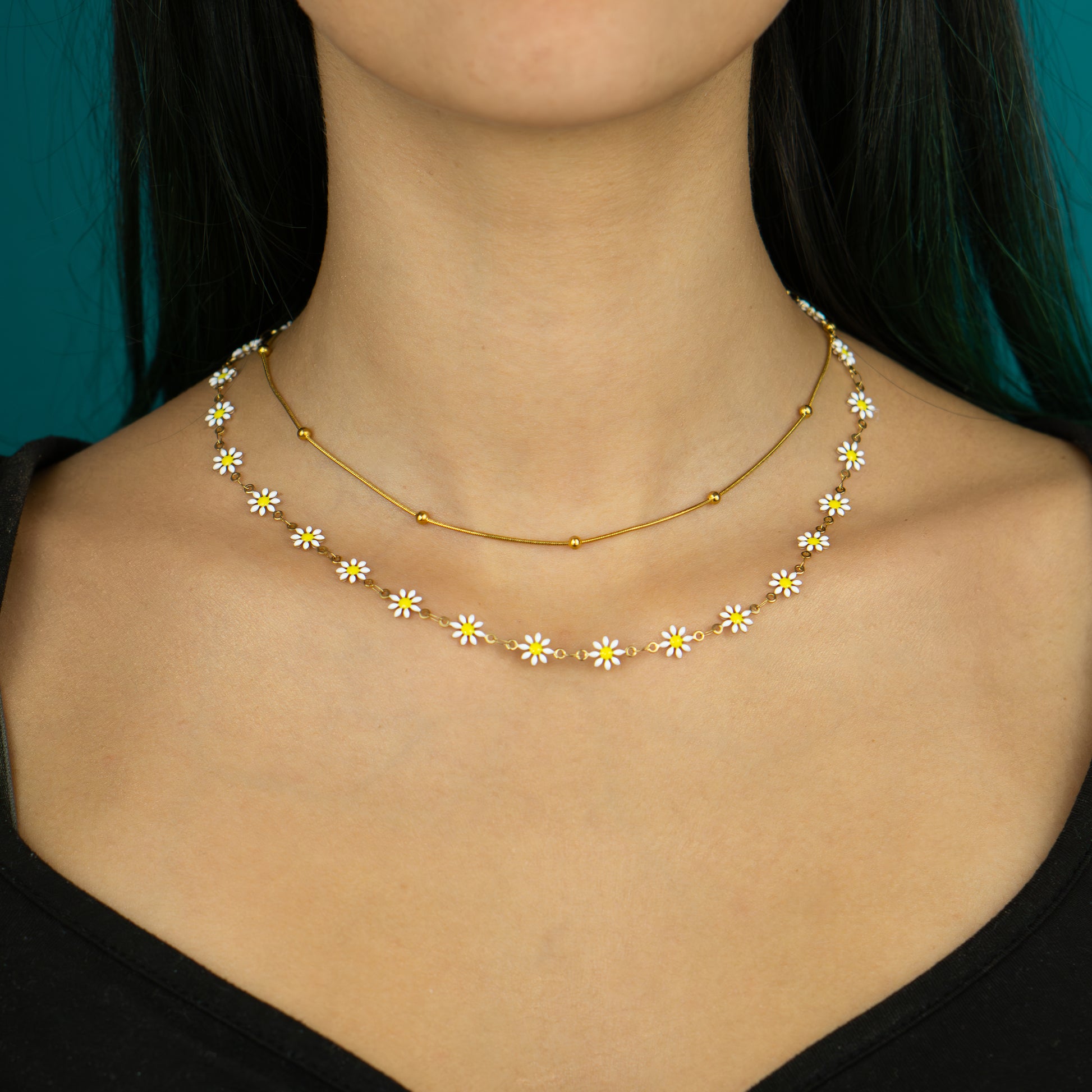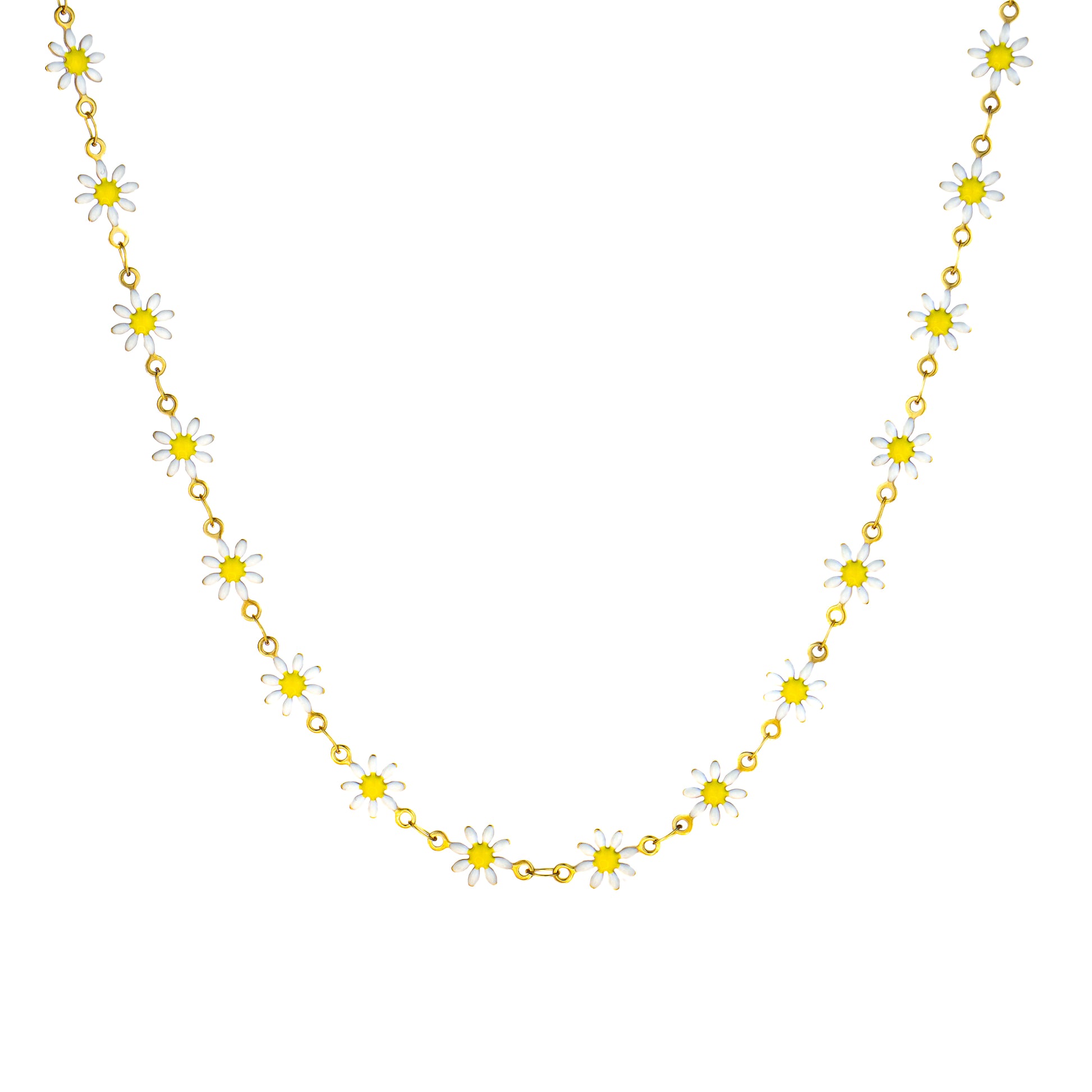 Indulge your playful side with our White Daisies Classic Necklace. This cute design features classic white daisies that add a touch of whimsy to any outfit. Let the flowers bloom and brighten up your day (and wardrobe)!