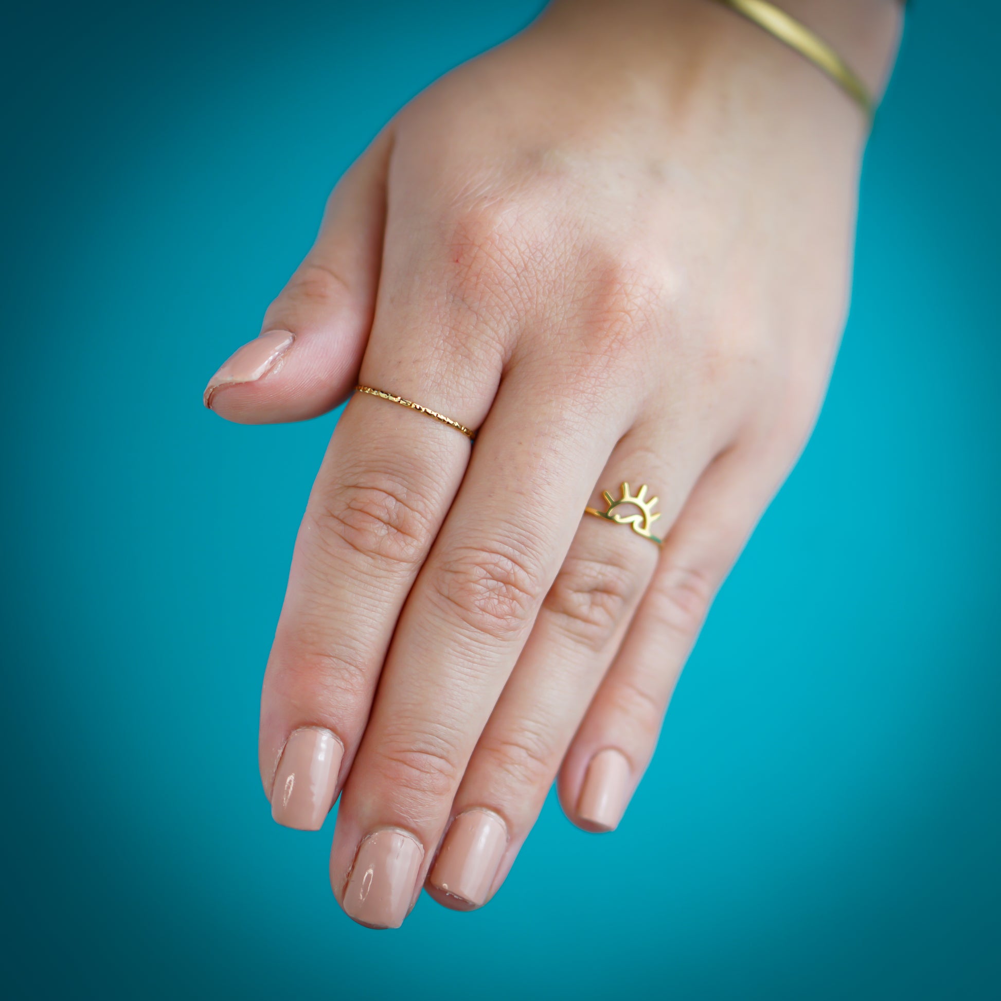 Enhance your style with the Delicate Shiny Gold Ring. This fine and elegant piece is a must-have for any fashion-forward individual. Its cute design and shiny finish add the perfect touch of sophistication to any outfit. Elevate your look with this stylish accessory.