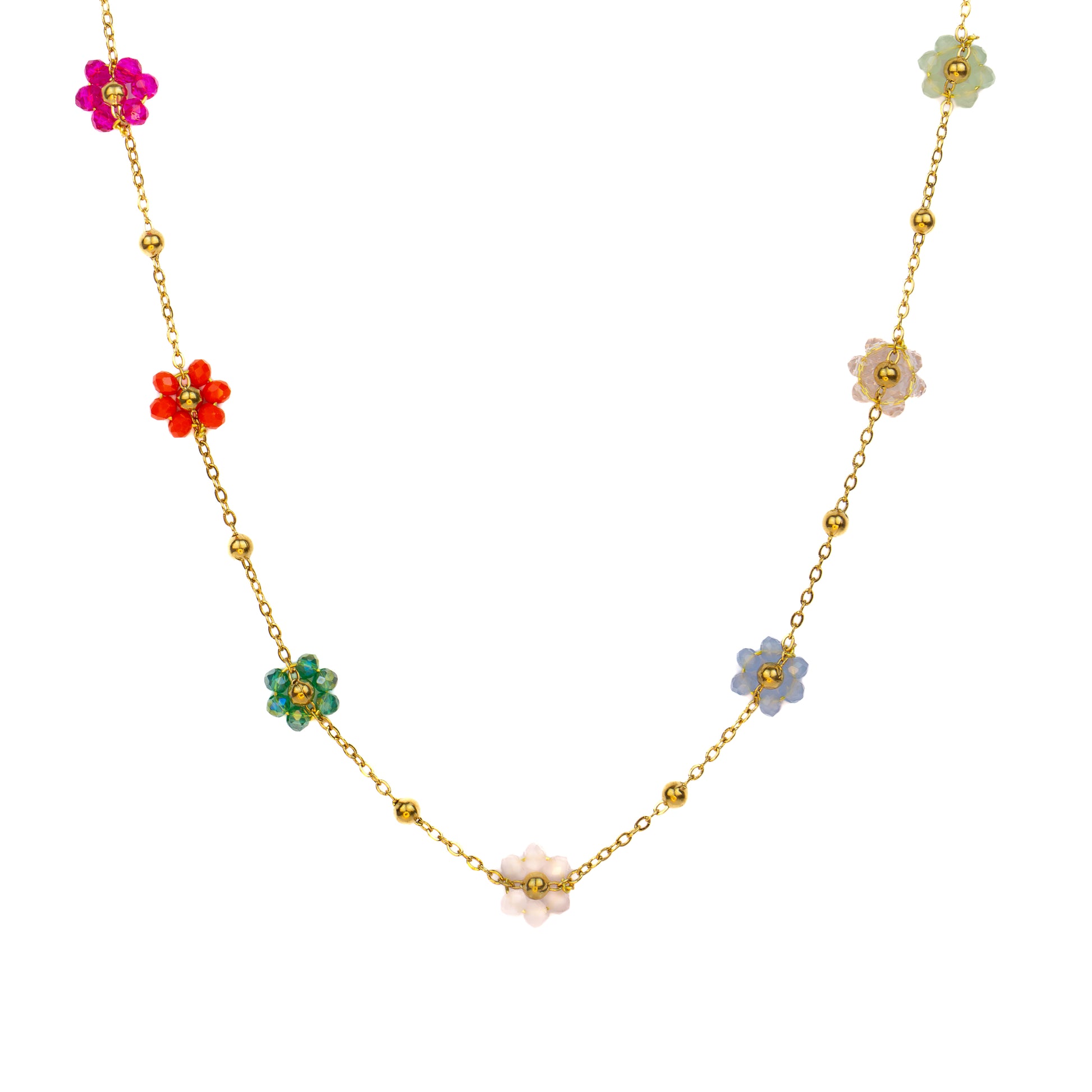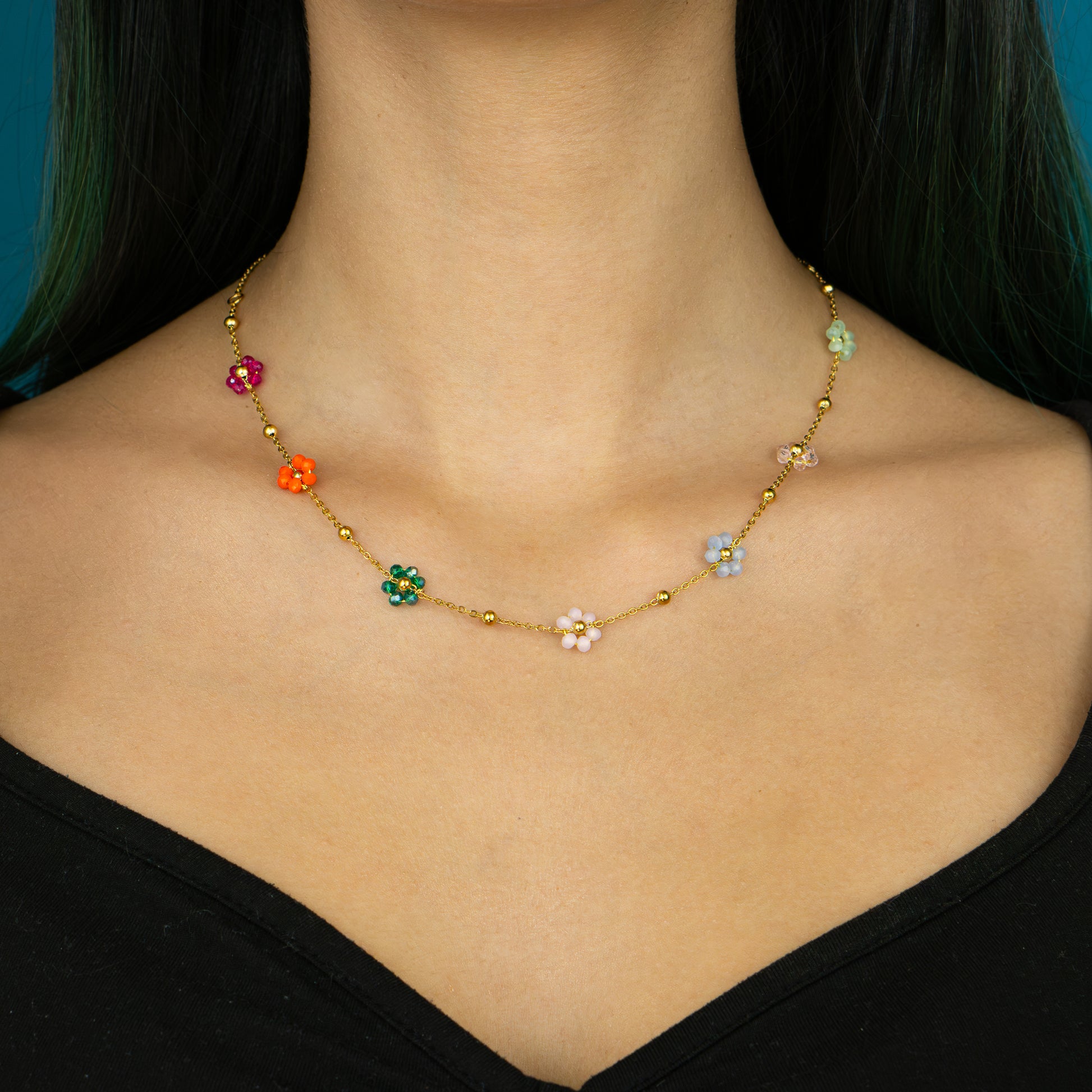 Unleash your colorful side with our Rainbow Daisies Necklace! These cute and essential daisies will add a playful touch to any outfit. Don't be basic, be a blooming beauty.