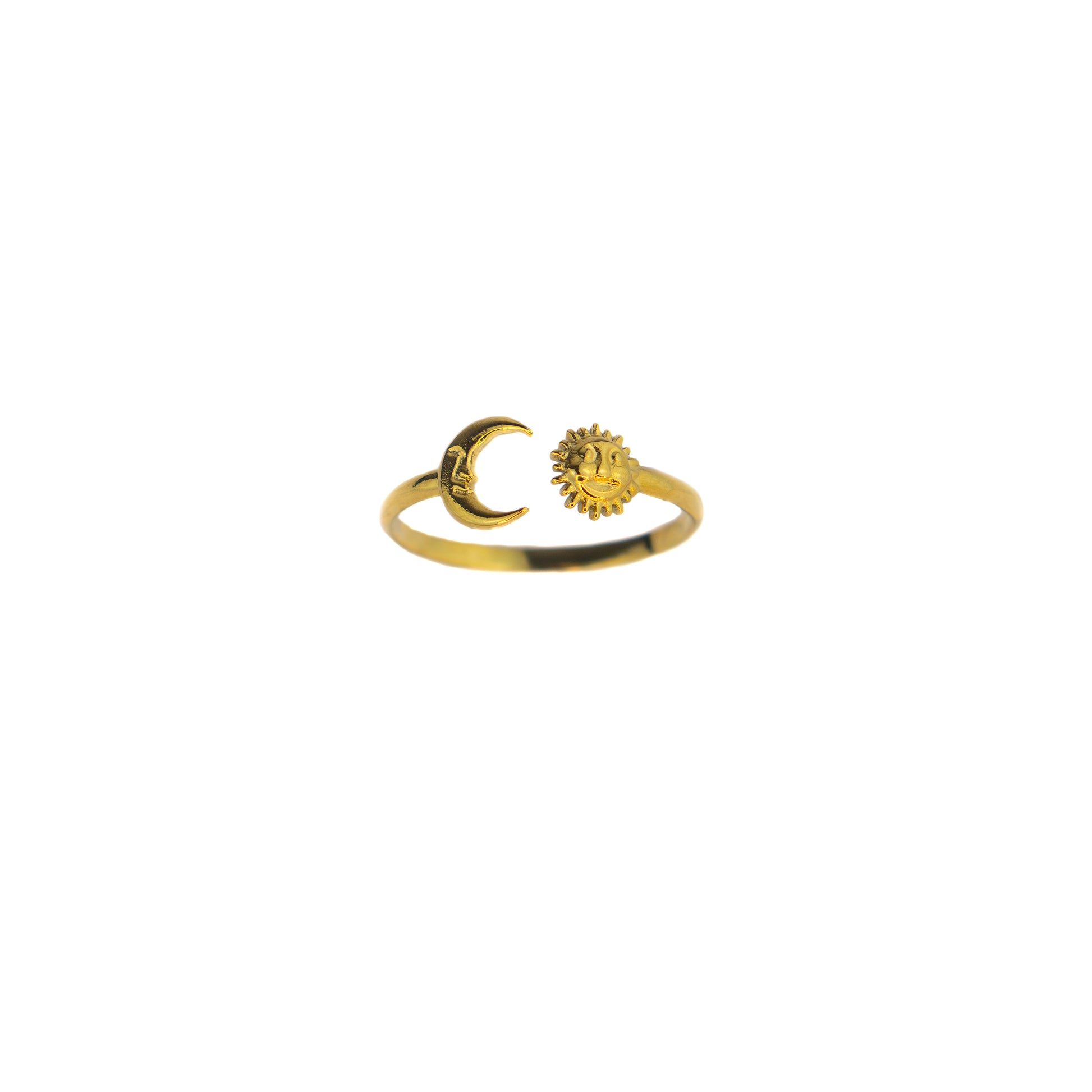 Add a touch of whimsy to your outfit with our Sun and Moon Ring! This adorable adjustable ring features minimalist design and is tarnish free. Perfect for everyday wear and guaranteed to bring a smile to your face. Shine like the sun and moon with this cute ring!
